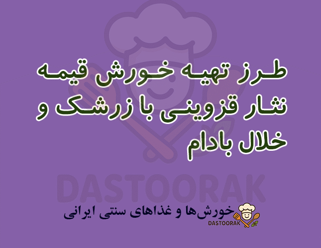 طرز تهیه خورش قیمهنثار قزوینی با زرشک و خلال بادامDana20 اکتبر 2025خورش قیمهنثار قزوینی | دستورک خورش قیمهنثار قزوینی | دستورک خورش قیمهنثار قزوینی یکی از غذاهای سنتی و خوشمزهی ایرانی ... ادامه مطلب