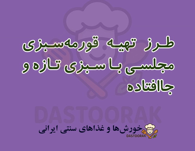 طرز تهیه قورمهسبزی مجلسی با سبزی تازه و جاافتادهDana19 اکتبر 2025قورمهسبزی، ملکه غذاهای ایرانی، با عطر و طعم بینظیرش، همواره جایگاه ویژهای در سفرههای ما داشته است. این دستور پخت، ... ادامه مطلب