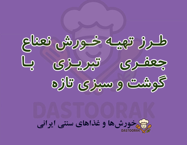 طرز تهیه خورش نعناعجعفری تبریزی با گوشت و سبزی تازهDana27 سپتامبر 2025🌿 طرز تهیه خورش نعناعجعفری تبریزی با گوشت و سبزی تازه | دستورک خورش نعناعجعفری تبریزی یکی از غذاهای اصیل ... ادامه مطلب